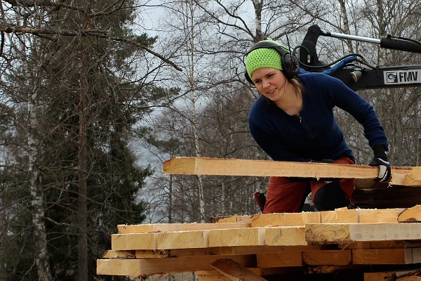 Det är den där tiden på året då arbetskläderna blir fulla av kåda. Svarta fläckar som inte riktigt går bort i tvätten. När hår, handskar och kläder luktar så där tryggt, friskt och starkt som bara nysågad gran kan göra. Vätskan i träet när barken skärs bort. Tyngden av färskt virke som staplas i prydliga högar. Den kommande väntan innan vår skog kan bli vårt hus.
