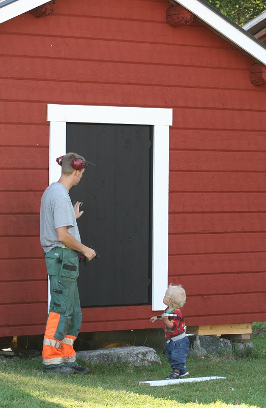 Slaktarn´s snickarteam är nästintill klara med vedbodens förvandling. Så nu är allt så där rakt och symmetriskt som bara en äkta snickare kan begära. Bra jobbat!