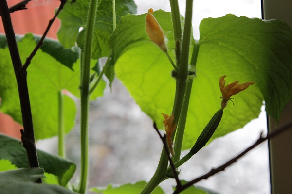 Men mest av allt blir jag glad över den här lilla minigurkan som jag hoppas växer sig stor och kraftig. Åtminstone så det räcker till en smörgås. Läckra gardiner alltså.