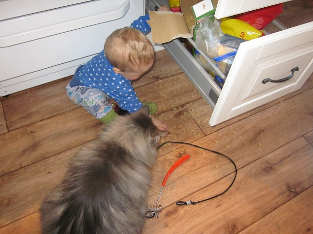 – Eller hur då Katten? Så skulle vi bara räkna makaronerna. Och sen lägga tillbaka dem. Hur många har du därborta!?