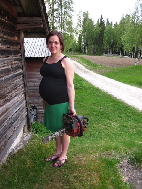 Och därför spatserar jag nu runt här hemma med en äkta Jonsered i min hand. Ska det va, så ska det vara äkta vara. Inga billiga piratkopior här inte.Snyggt, viktigt och praktisk. Ifall jag behöver såga i något. Eller fälla ett träd. Dessutom klär den mig. Ser ni hur färgen framhäver nyanserna i mina ögon? Dessutom matchar den nagellacket.