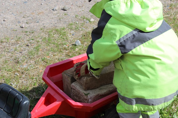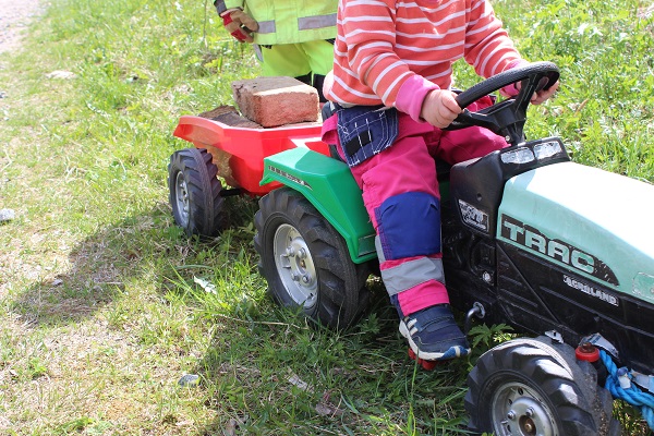 Ibland, när byggdammet stockar sig i näsan, släpper vi allt. Slänger på fikabord, fiskegrejor och matkorgen på vagnen och tar traktorn ner till sjön. Plockar skogshallon längs vägen. Förtjusas av obehaget att ha en sprattlande liten fisk i sin hand. Äter kvällsmat i kvällssolen med fiskjusarna som skriar över vattnet.