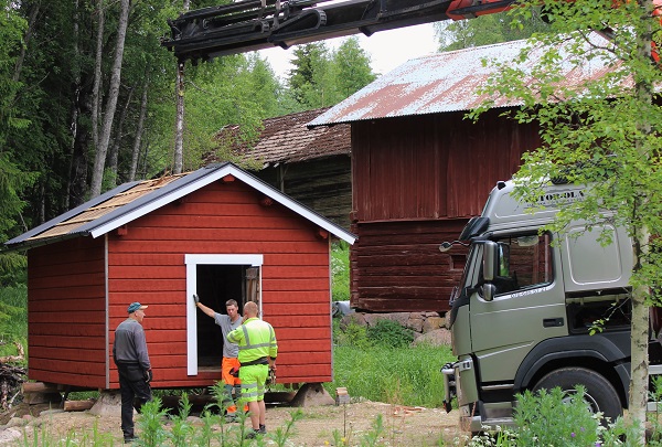 Utan problem kom den sen till sin nya plats och döptes därmed om till sophus då den hädanefter skall agera sopsorteringscentral här på gården.