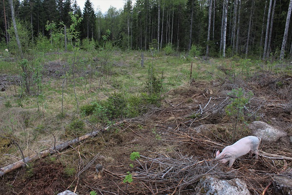 Just nu så bearbetar dem på bästa sätt marken på ett kalhygge. Ett jobb som vanligtvis görs av bränsleslukande maskiner.