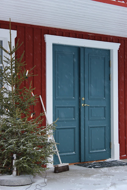 Men de höll god min och lyssnade tålmodigt när jag i väl valda ordalag försökte beskriva den perfekta nyansen av blått, fåordig som jag är (eller inte). Sen drog jag med dem på omvägar för att titta på hus med fina dörrar och hade även med mig några färgprover som jag inte var sen med att slänga upp varhelst jag såg en blå dörr. Kanske knacka på och prata lite om nyanser av blått också, när jag ändå var där. Tillslut försökte jag blanda den perfekta nyansen själv, men insåg ganska snabbt att det inte riktigt var min avdelning för tillfredsställelse. Det var helt enkelt många turer hit och dit, innan dörrarna tillslut kom på plats.